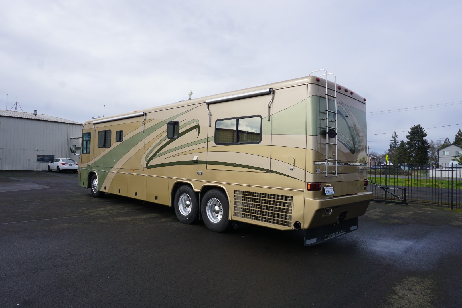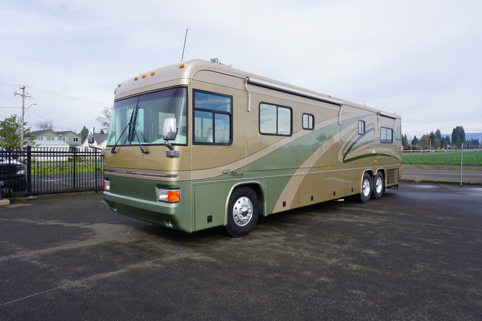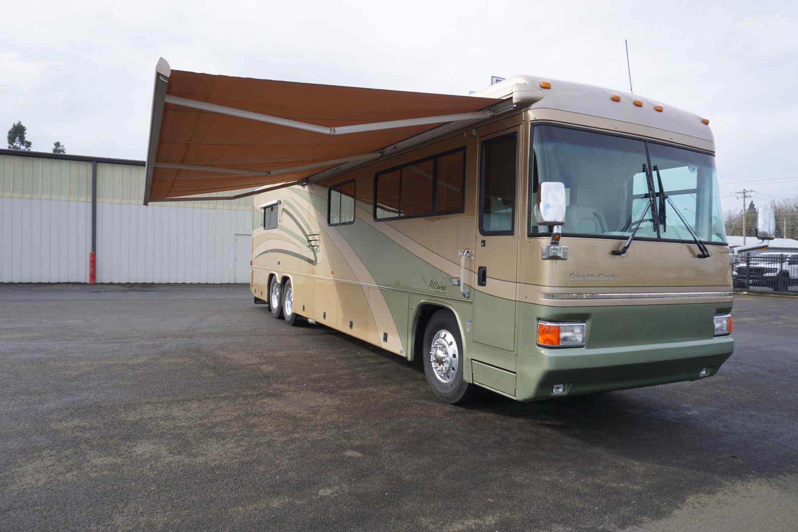 This 2003 40 Country Coach Allure is in excellent condition with 70,000 miles. This coach is actually 39'10" on a semi-monocoque chassis with a liftable tag axle. This coach turns like a 36 footer since it has a tag axle. Great driver with a ISL 370 Cummins and a 6 speed Allison Transmission. Great dual slide floor plan with a large kitchen and tons of storage space. This coach has lots of options such as Electric Girard awning, Solid Maple cabinets, combo washer and dryer, Upgraded Bedroom TV, Residential fridge, and much much more