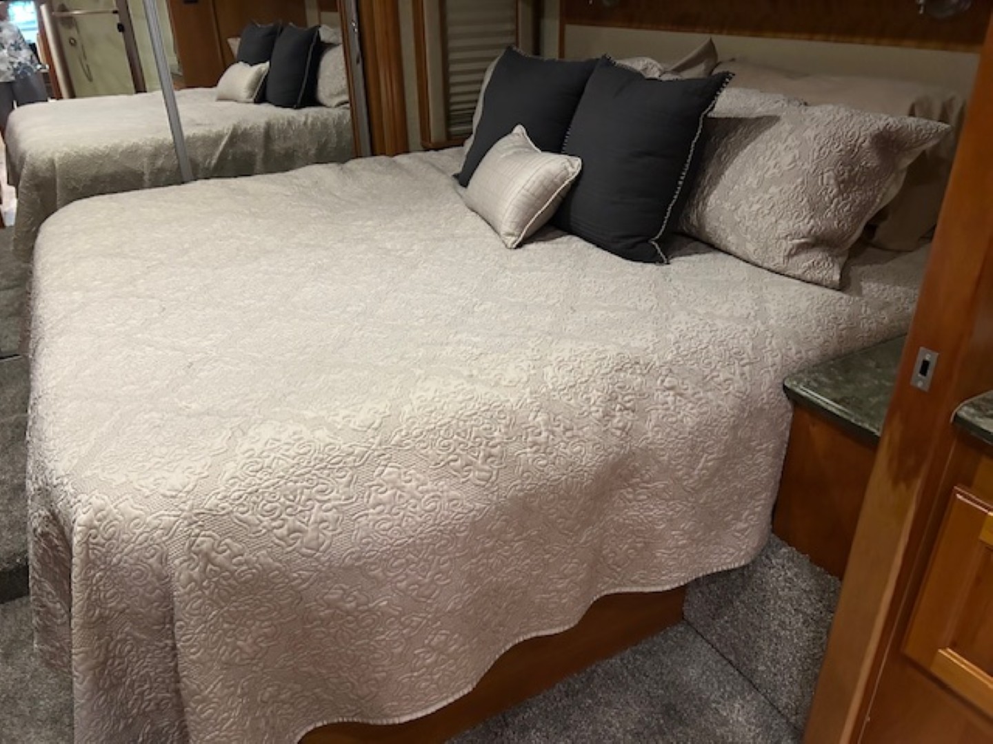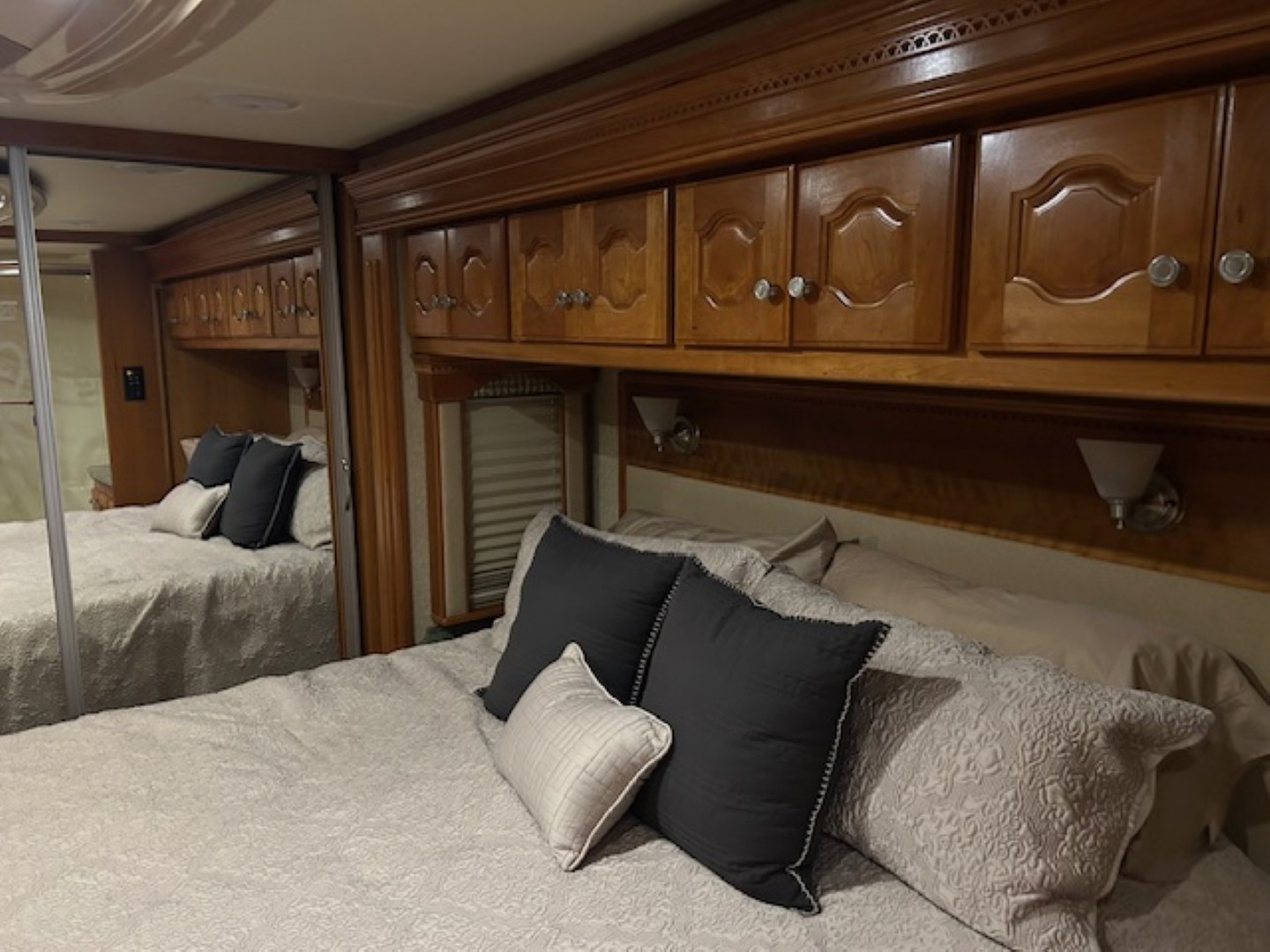 Garaged kept, immaculate condition, we sold it to them in 2014. C13 Cat 525HP engine, Allison 4000 trans, 72,892 miles, 10kw QD Gen, All TV's have been updated to Smart LED including exterior, Residential Fridge, Alpine 11" dash stereo/BU Camera, New carpet in bedroom and slides, Full Heated Tile Floor, Recovered cab seats, MCD Shades in Cockpit, and much more. Please contact for additional pictures and specs/build sheet