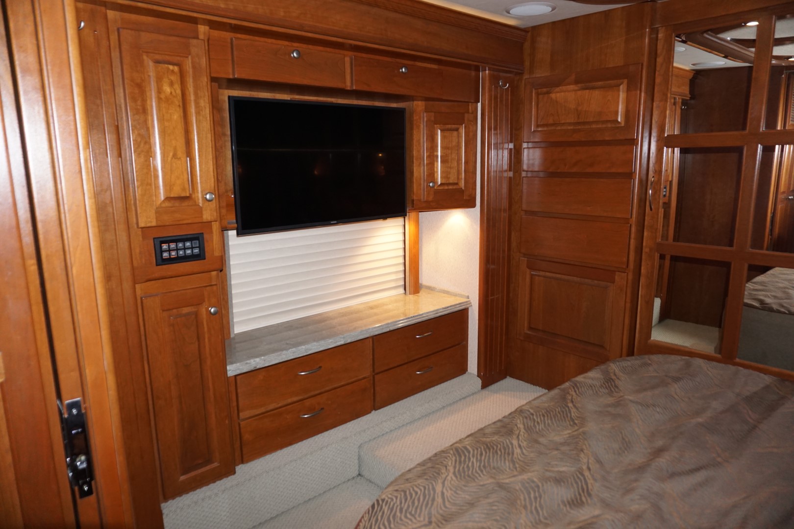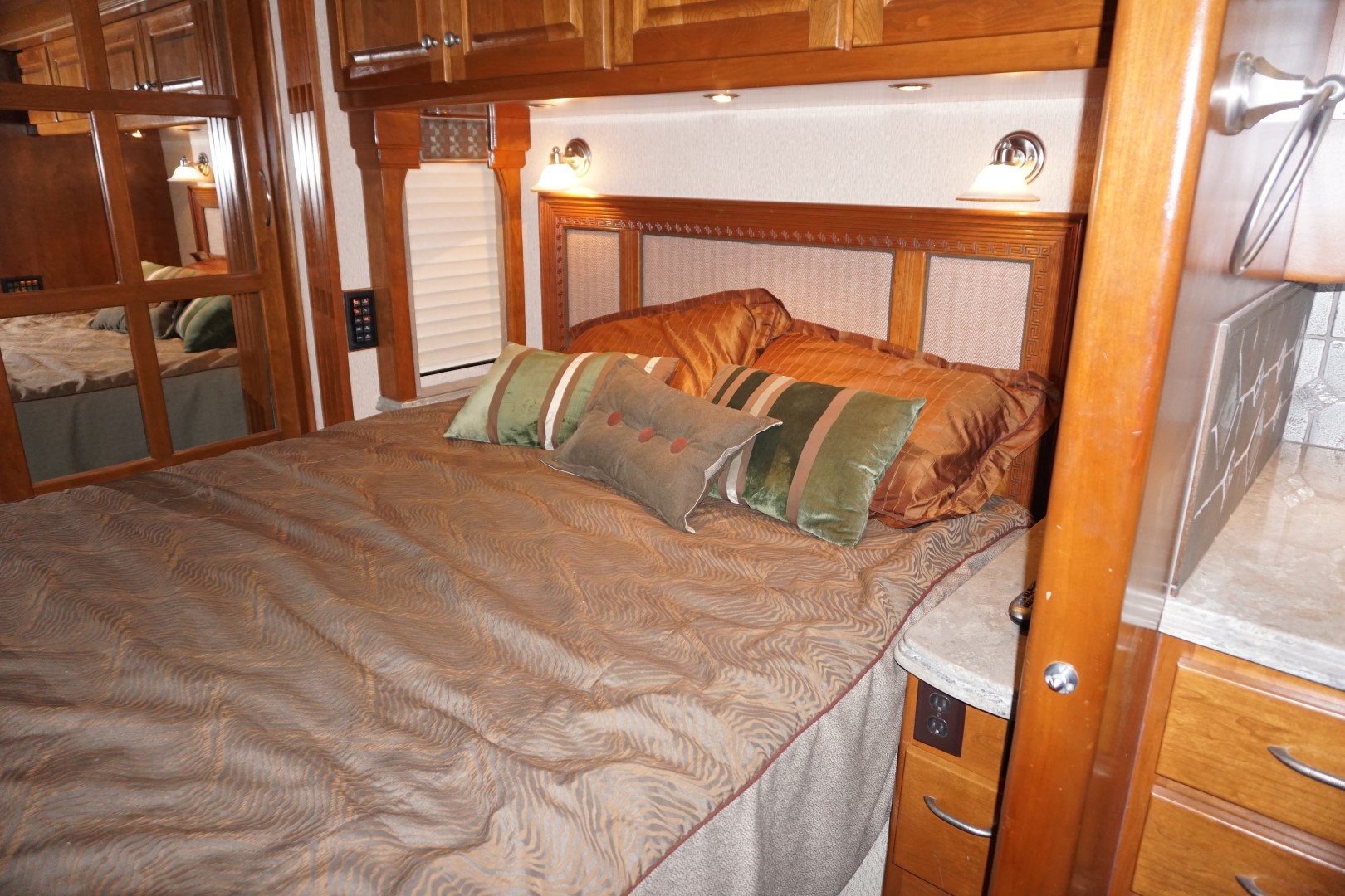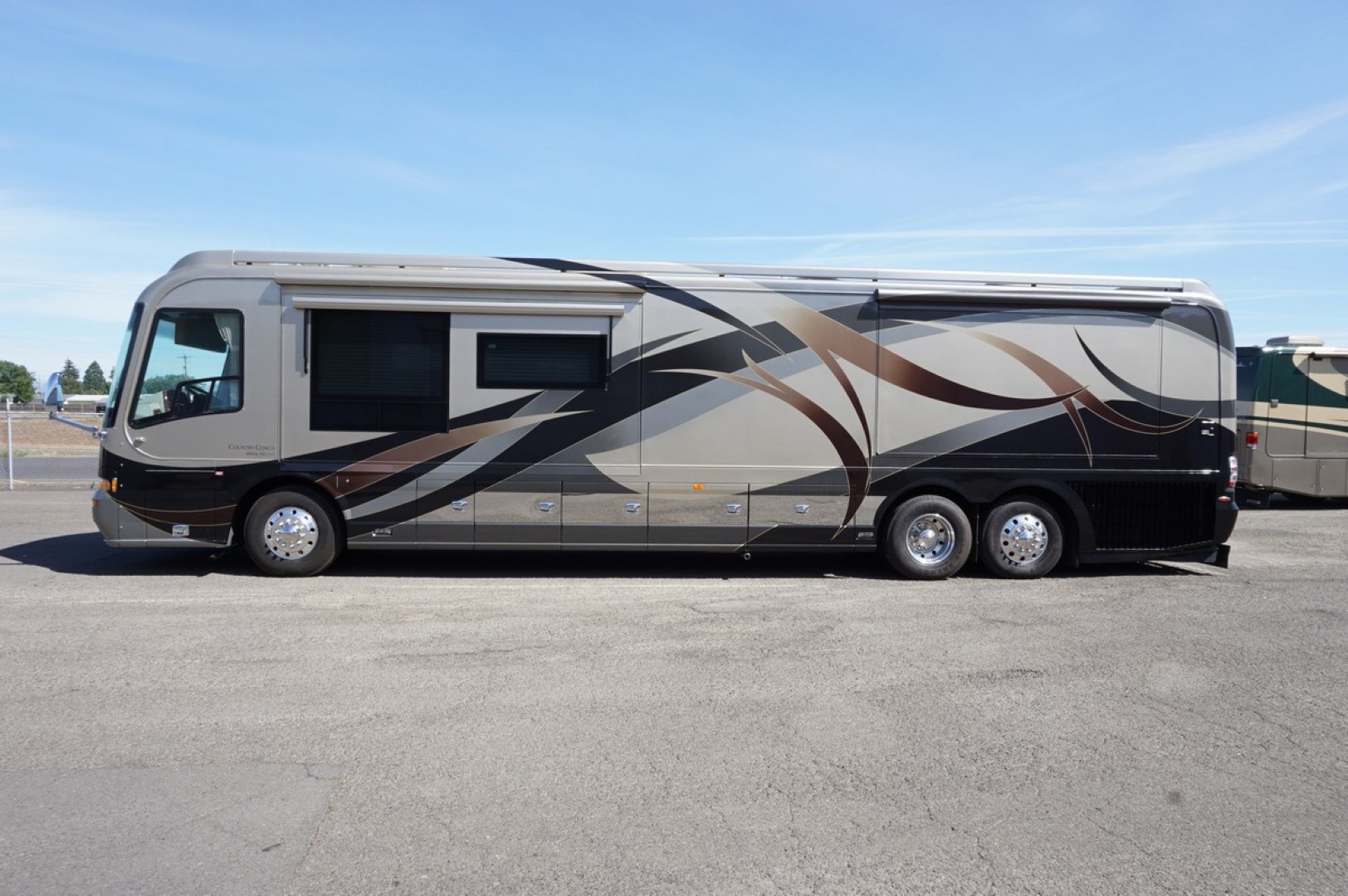 Quad Slide Affinity, IFS, Cummins 600HP ISX, 82,000 miles, Solar System, Heated Tile Floor, Stacked WD, Aqua Hot, Roof Mounted Awnings, Power Shades, Cherry Hardwood, MCD Shades in Cockpit, Updated Front TV, and much more. Please contact for additional questions.